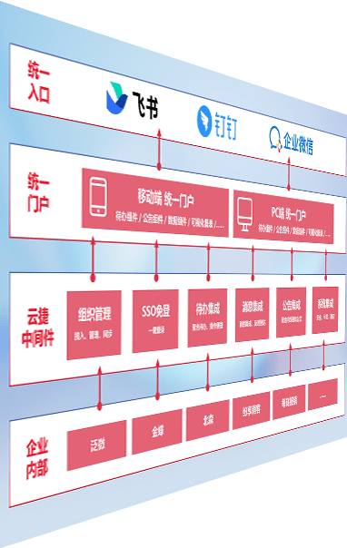 对协作平台提供支持服务,,,支持企业应用与协作平台对接,,,包含组织同步、、、、消息集成、、待办集成等。。支持目前主流的协作平台:钉钉、、企微和飞书。。